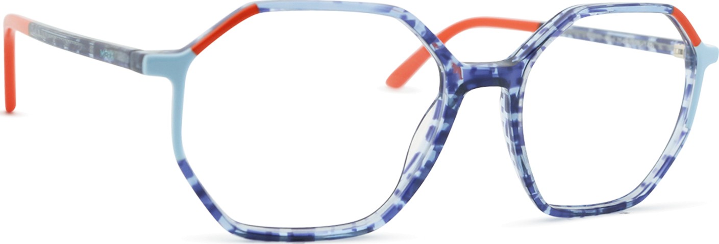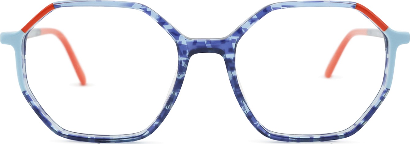 - A cor azul da armação combina perfeitamente com um tom de pele claro e um cabelo castanho claro, preto ou loiro claro.