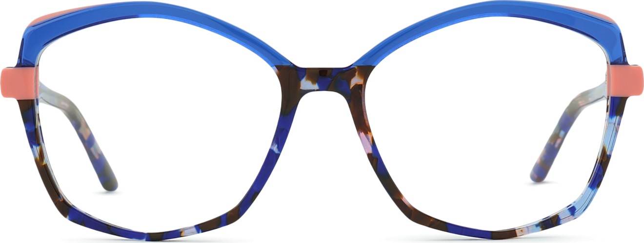 A cor azul da armação combina perfeitamente com um tom de pele claro e um cabelo castanho claro, preto ou loiro claro.