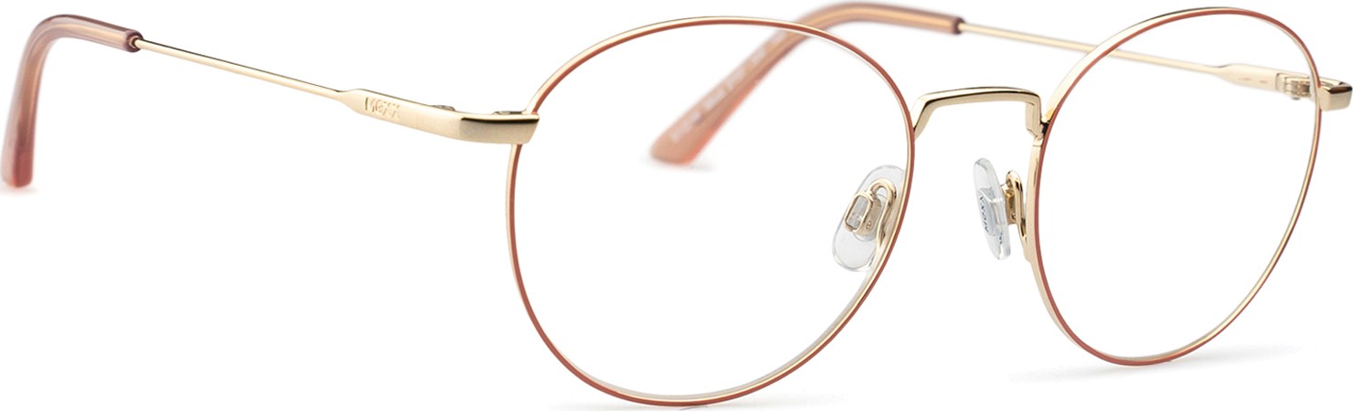 - A cor rosa da armação combina perfeitamente com um tom de pele claro e um cabelo castanho ou loiro claro.