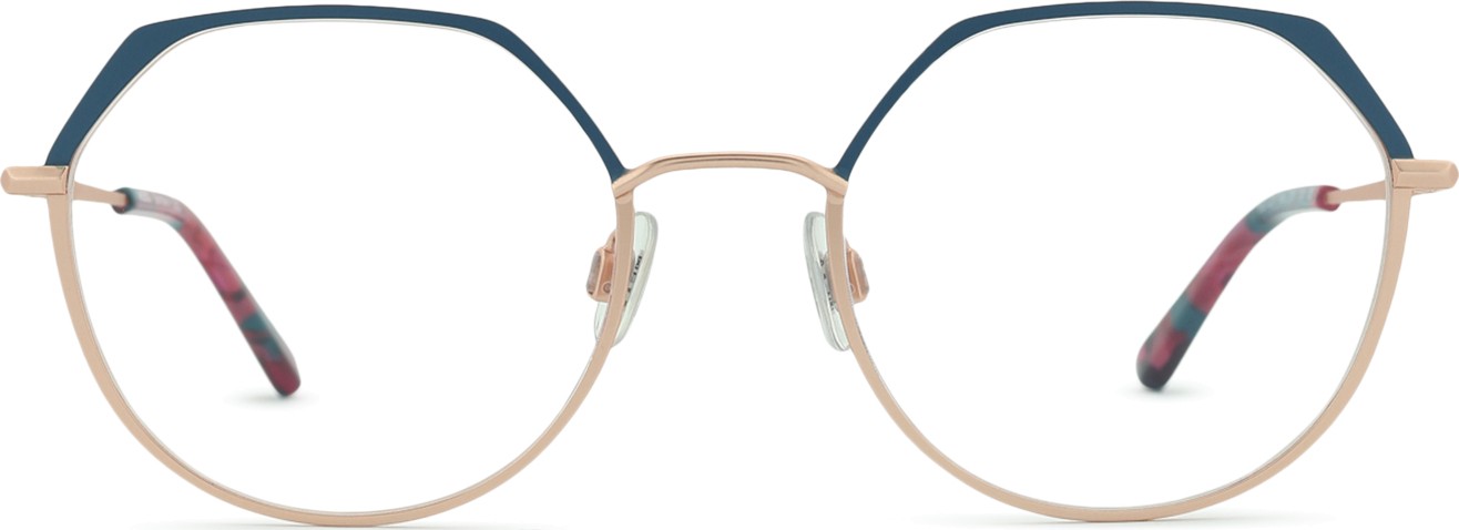 - A cor azul da armação combina perfeitamente com um tom de pele claro e um cabelo castanho claro, preto ou loiro claro.