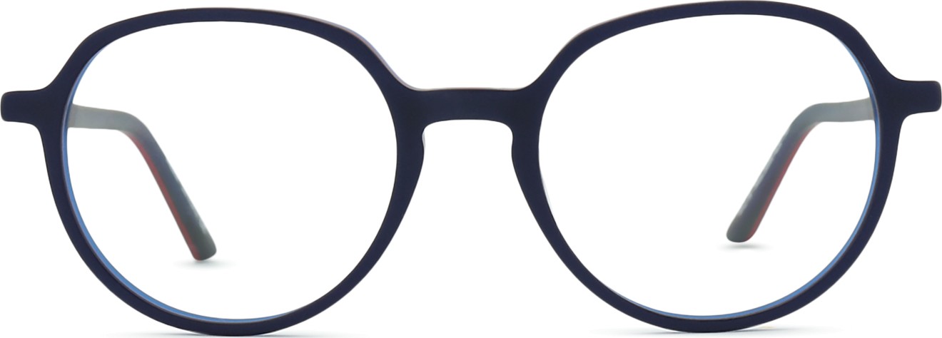 A cor azul da armação combina perfeitamente com um tom de pele claro e um cabelo castanho claro, preto ou loiro claro.