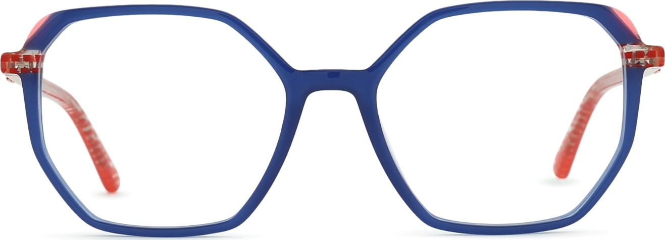 - A cor azul da armação combina perfeitamente com um tom de pele claro e um cabelo castanho claro, preto ou loiro claro.