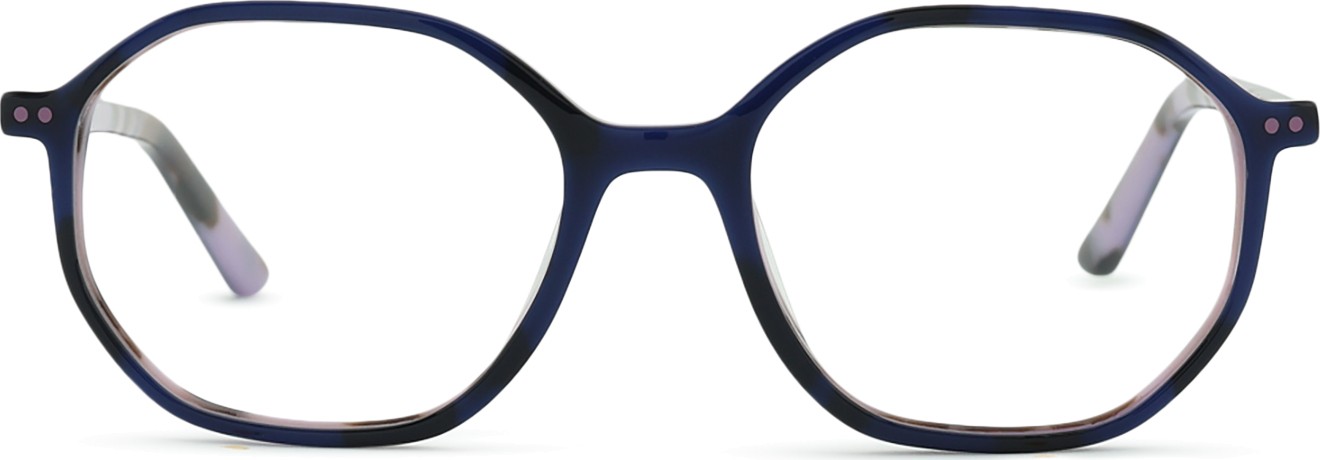 A cor azul da armação combina perfeitamente com um tom de pele claro e um cabelo castanho claro, preto ou loiro claro.