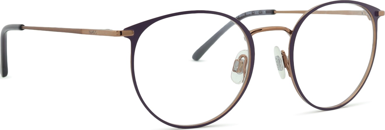 - A cor púrpura da armação combina perfeitamente com um tom de pele claro e um cabelo preto, cinzento, branco ou loiro claro.