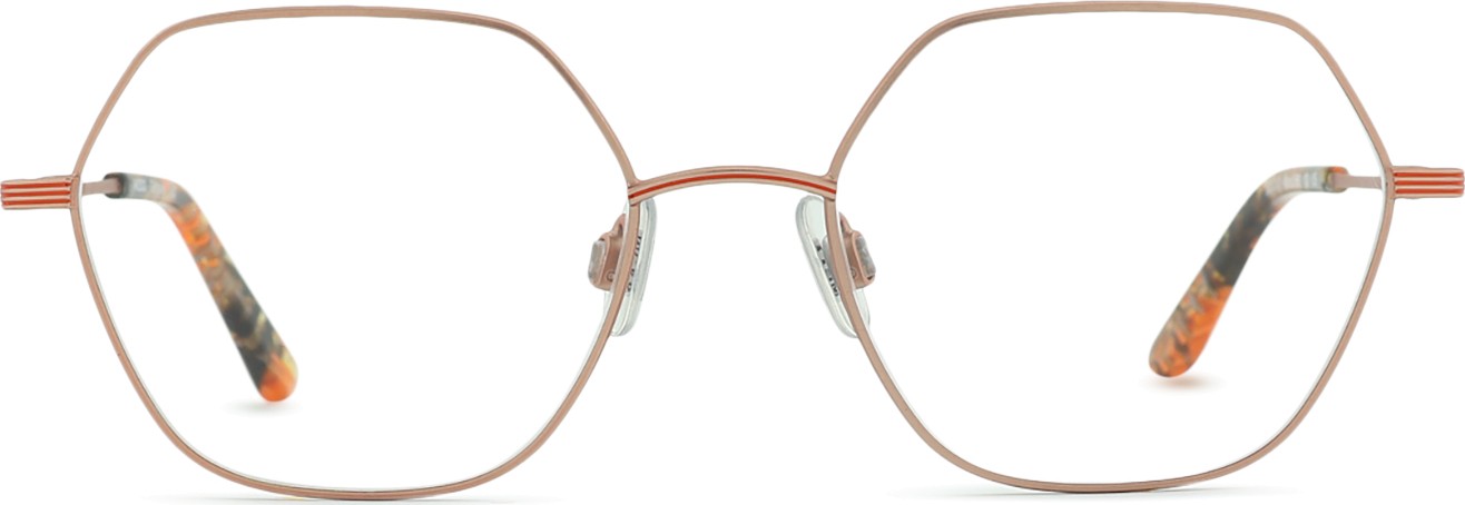 • A cor laranja da armação combina perfeitamente com um tom de pele escuro e um cabelo preto, castanho escuro e loiro escuro.