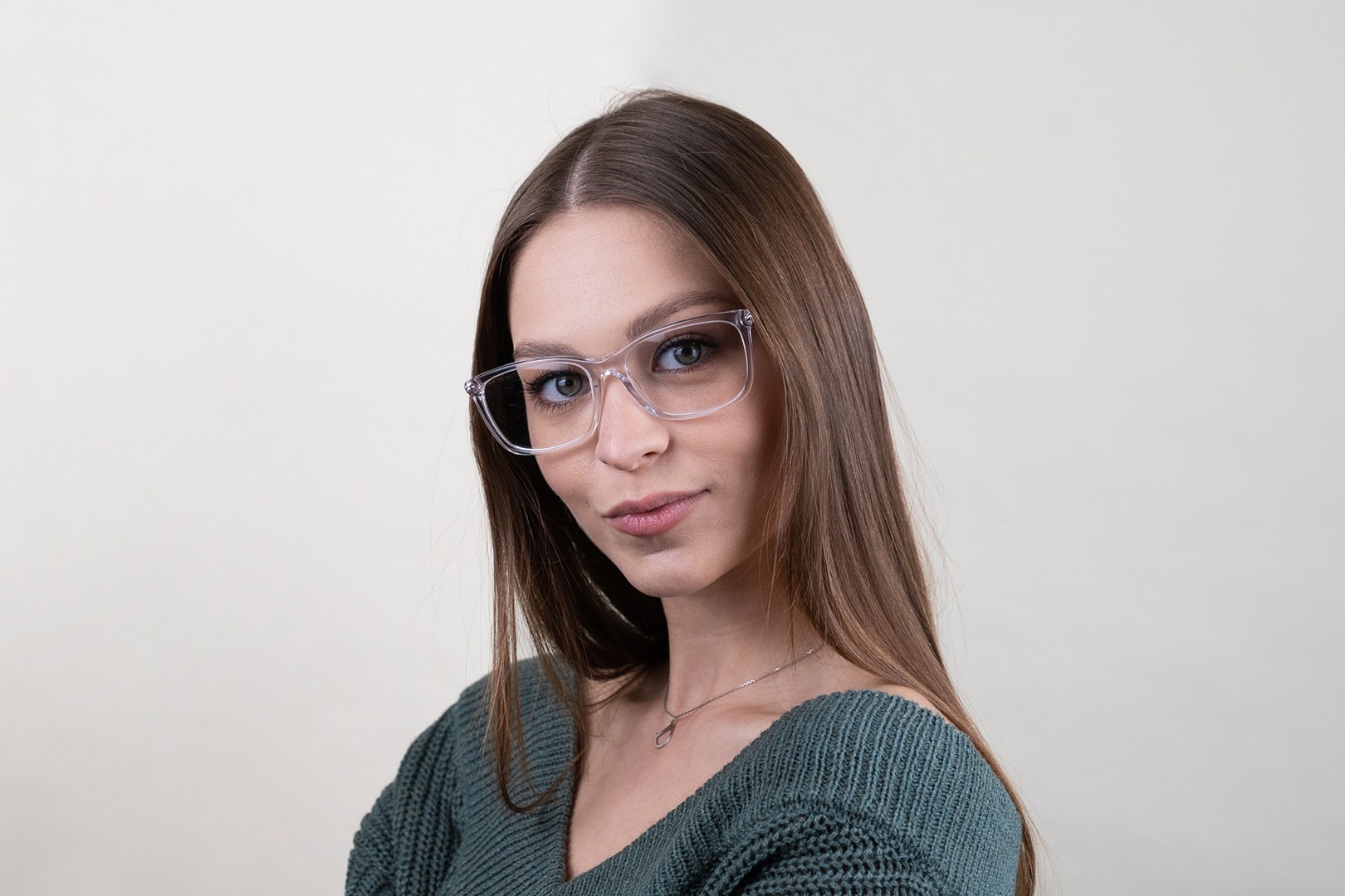 - A armação transparente combina perfeitamente com os tons de pele claros e escuros e com todas as cores de cabelo.