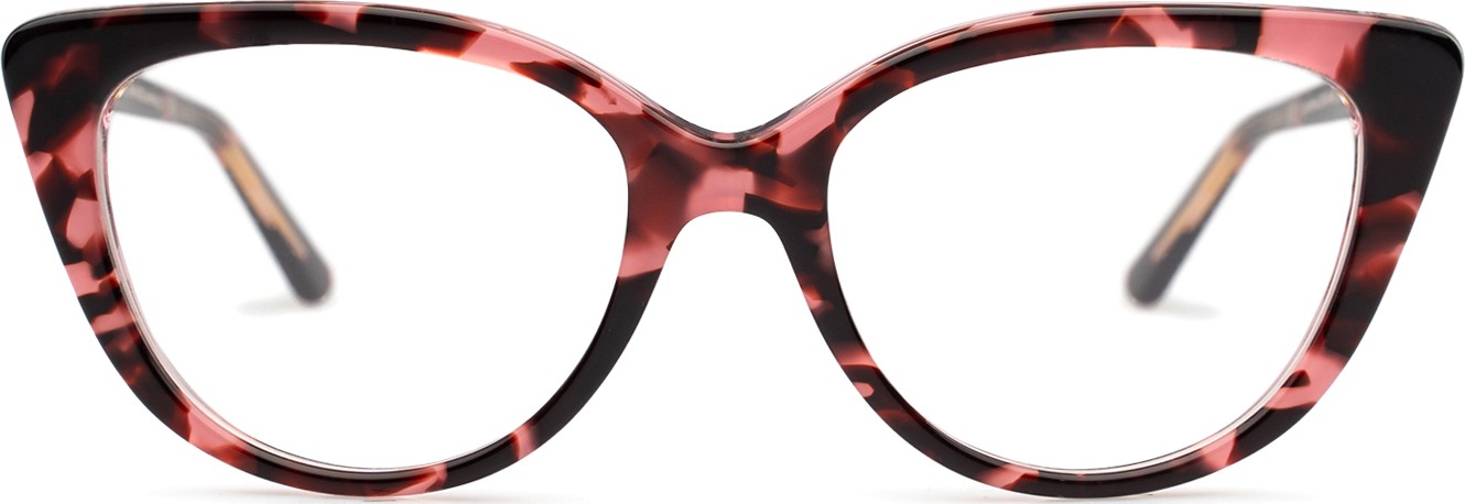 - A cor rosa da armação combina perfeitamente com um tom de pele claro e um cabelo castanho ou loiro claro.
