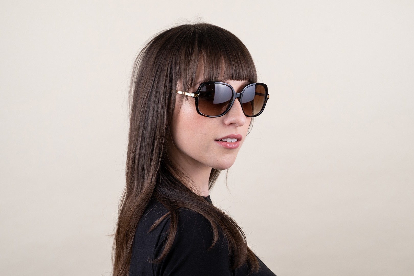 • A cor castanha da armação combina perfeitamente com um tom de pele quente e um cabelo castanho claro, preto ou loiro escuro.