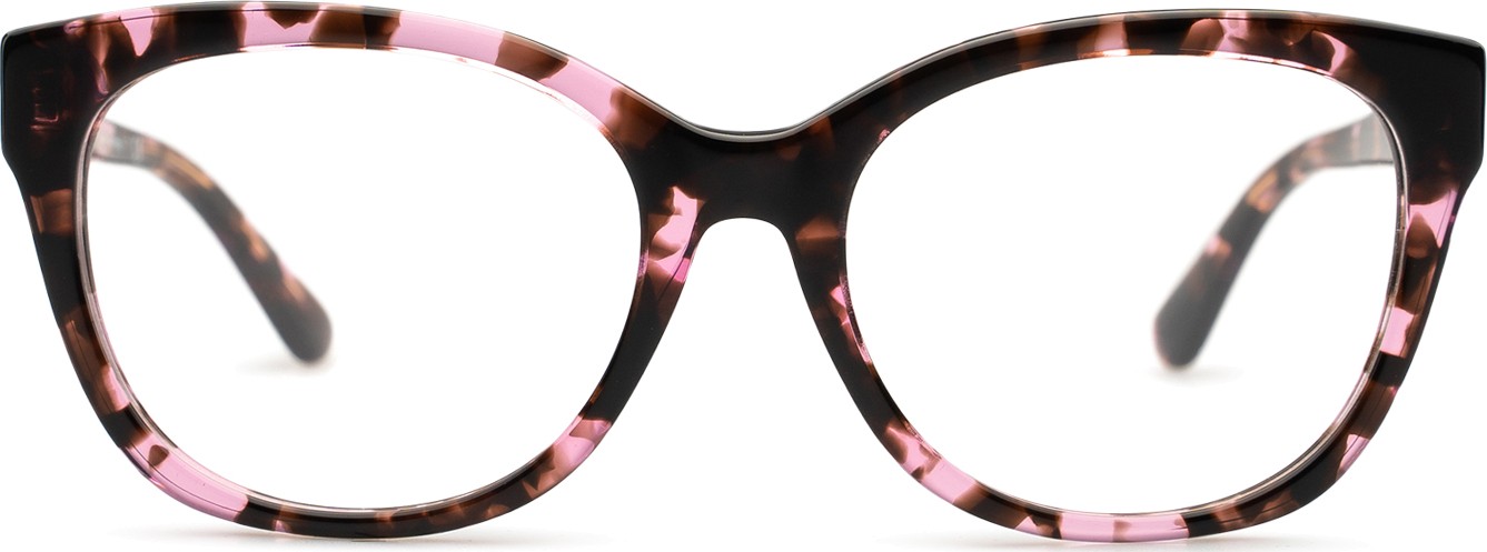 - A cor rosa da armação combina perfeitamente com um tom de pele claro e um cabelo castanho ou loiro claro.