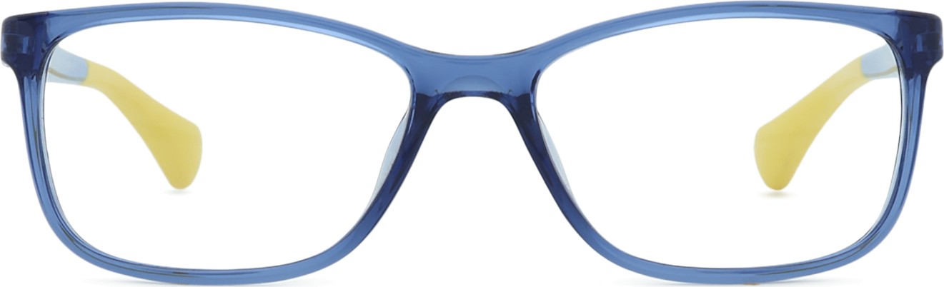 - A cor azul da armação combina perfeitamente com um tom de pele claro e um cabelo castanho claro, preto ou loiro claro.