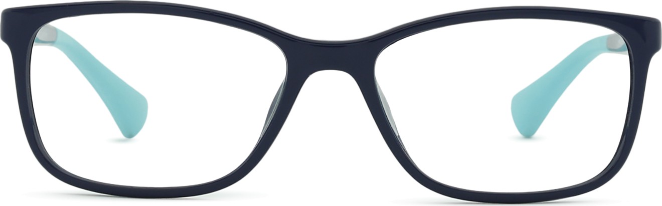 - A cor azul da armação combina perfeitamente com um tom de pele claro e um cabelo castanho claro, preto ou loiro claro.
