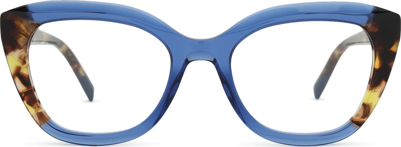 - A cor azul da armação combina perfeitamente com um tom de pele claro e um cabelo castanho claro, preto ou loiro claro.