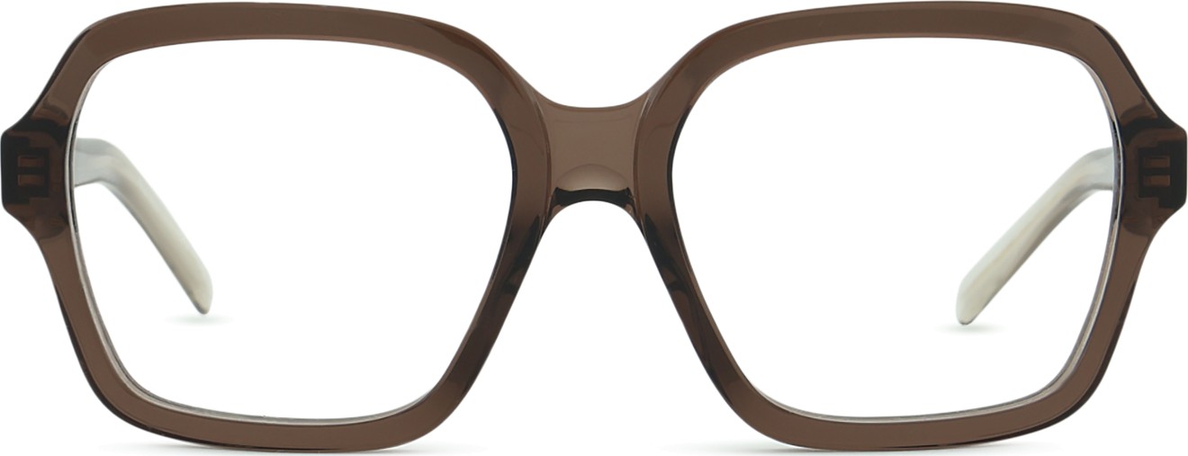 A cor castanha da armação combina perfeitamente com um tom de pele escuro e um cabelo castanho claro, preto ou loiro escuro.