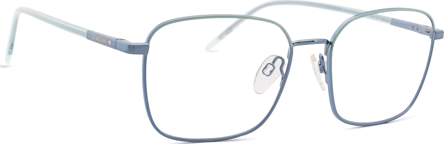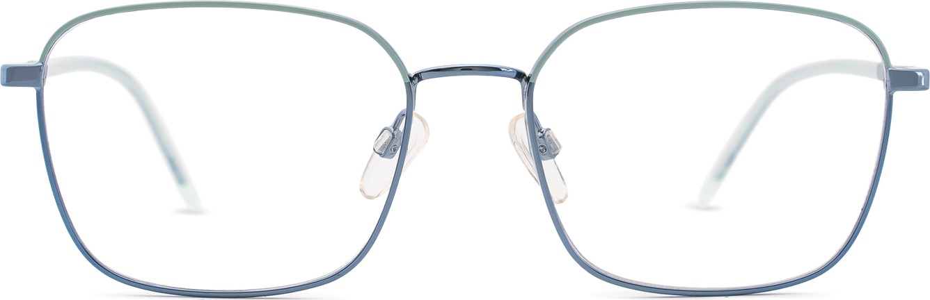 - A cor azul da armação combina perfeitamente com um tom de pele claro e um cabelo castanho claro, preto ou loiro claro.
