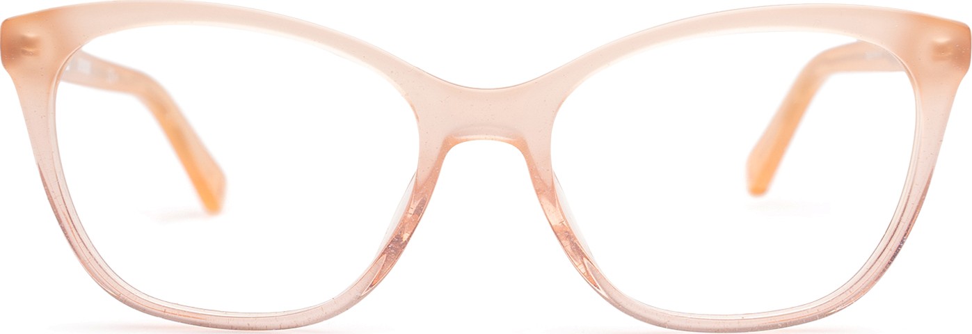 - A cor rosa da armação combina perfeitamente com um tom de pele claro e um cabelo castanho ou loiro claro.