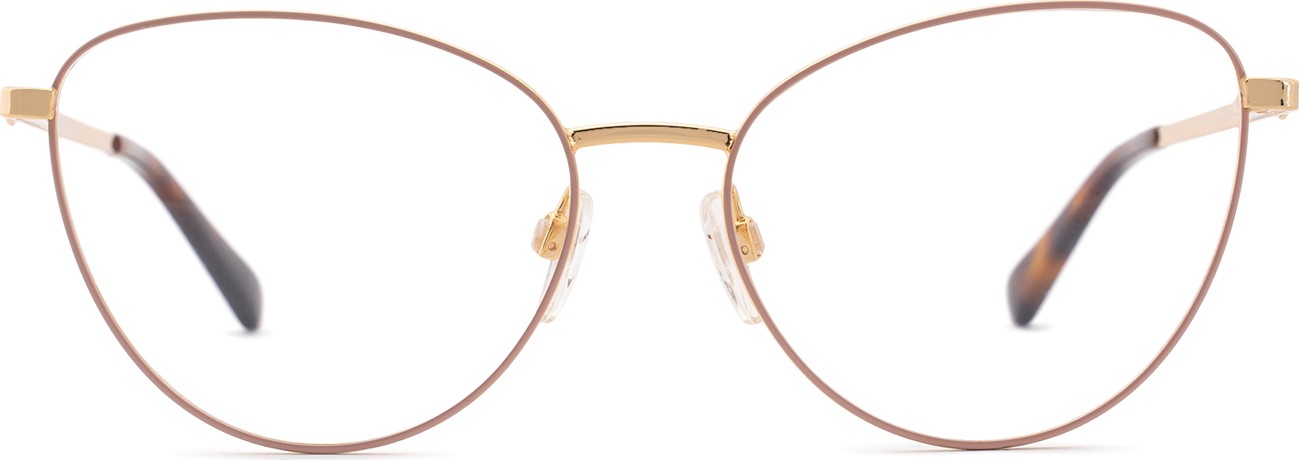 - A cor dourada da armação combina perfeitamente com um tom de pele escuro e um cabelo castanho escuro.