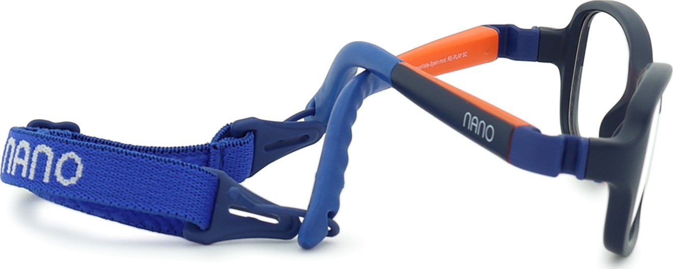 O modelo Re-Play possui duas correias têxteis ajustáveis que ajudarão a eliminar o risco de perda dos óculos e garantirão uma melhor fixação na cabeça durante as diversas atividades das crianças.