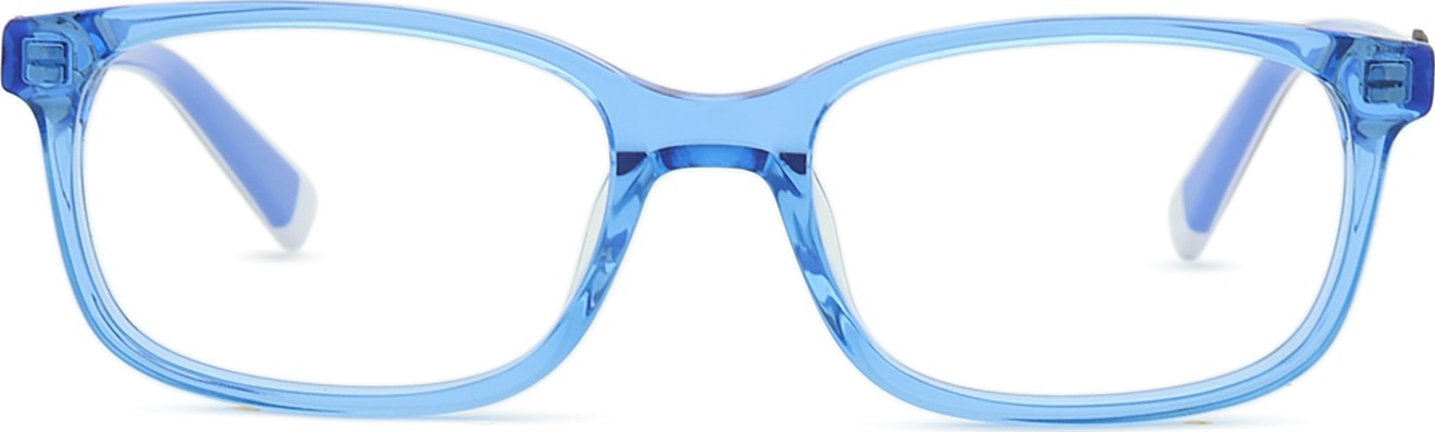 A cor azul da armação combina perfeitamente com um tom de pele claro e um cabelo castanho claro, preto ou loiro claro.
