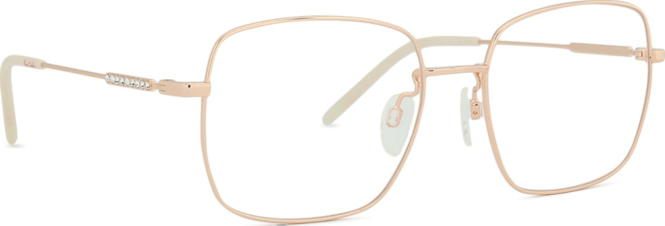 - A cor rosa da armação combina perfeitamente com um tom de pele claro e um cabelo castanho ou loiro claro.