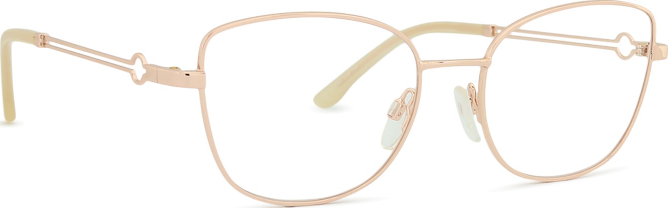 - A cor dourada da armação combina perfeitamente com um tom de pele escuro e um cabelo castanho escuro.