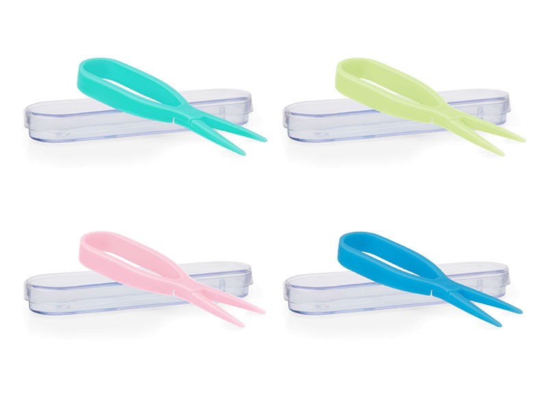 Estas pinças de diferentes cores são fabricadas num material inofensivo e inocuo e vêm num estojo de plástico para garantir a segurança e as condições higiénicas do produto.