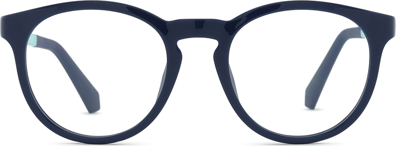 - A cor azul da armação combina perfeitamente com um tom de pele claro e um cabelo castanho claro, preto ou loiro claro.