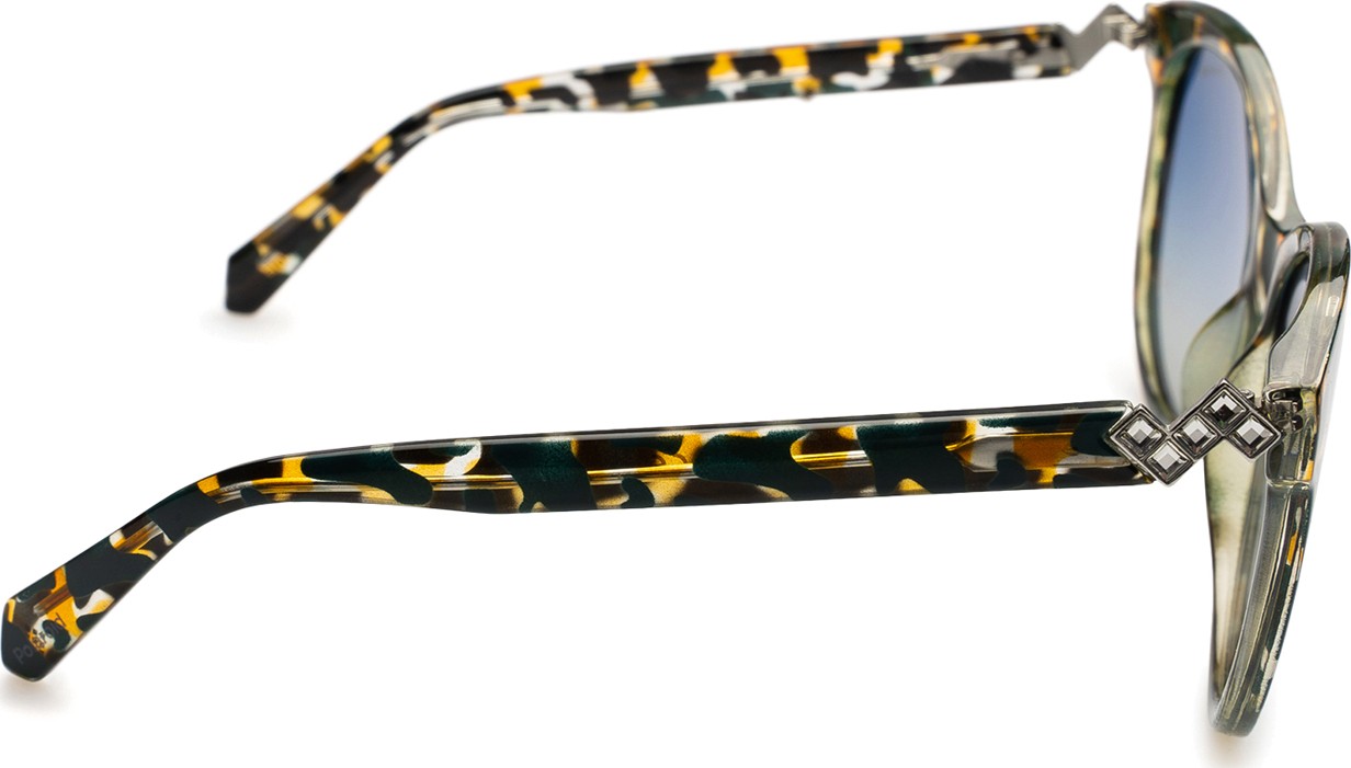 - A cor verde da armação combina perfeitamente com um tom de pele claro e um cabelo castanho escuro, preto ou ruivo.