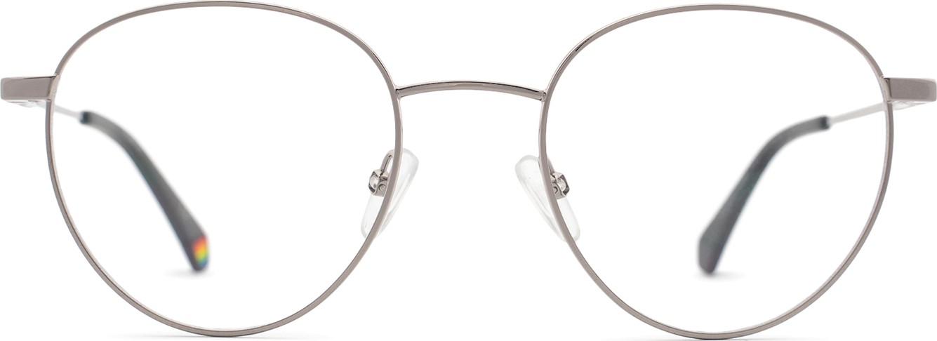 - A cor prateada da armação combina perfeitamente com um tom de pele claro e um cabelo vermelho, cinzento, branco ou loiro escuro.