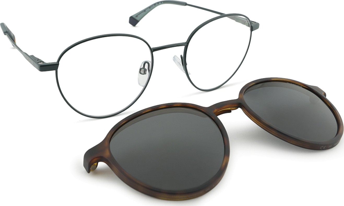 - Os óculos também incluem um clip solar adicional, que se fixa facilmente à armação dos óculos e os transforma em óculos de sol. O clip adapta-se perfeitamente à forma da armação e a sua instalação é muito rápida e simples. No entanto, se tiver dioptrias mais altas, é necessário escolher uma versão mais fina das lentes para que o clip não toque na superfície esférica frontal das lentes e se ajuste corretamente à armação.