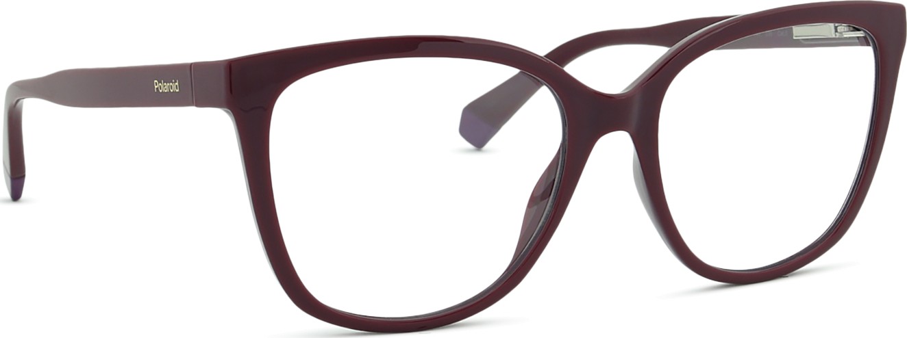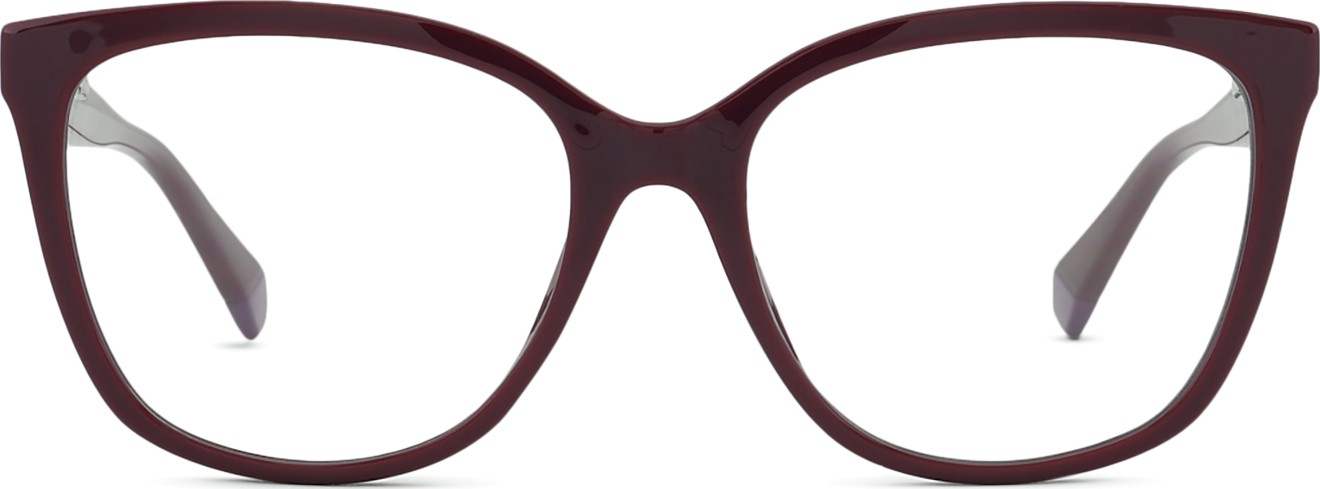 - A cor púrpura da armação combina perfeitamente com um tom de pele claro e um cabelo preto, cinzento, branco ou loiro claro.
