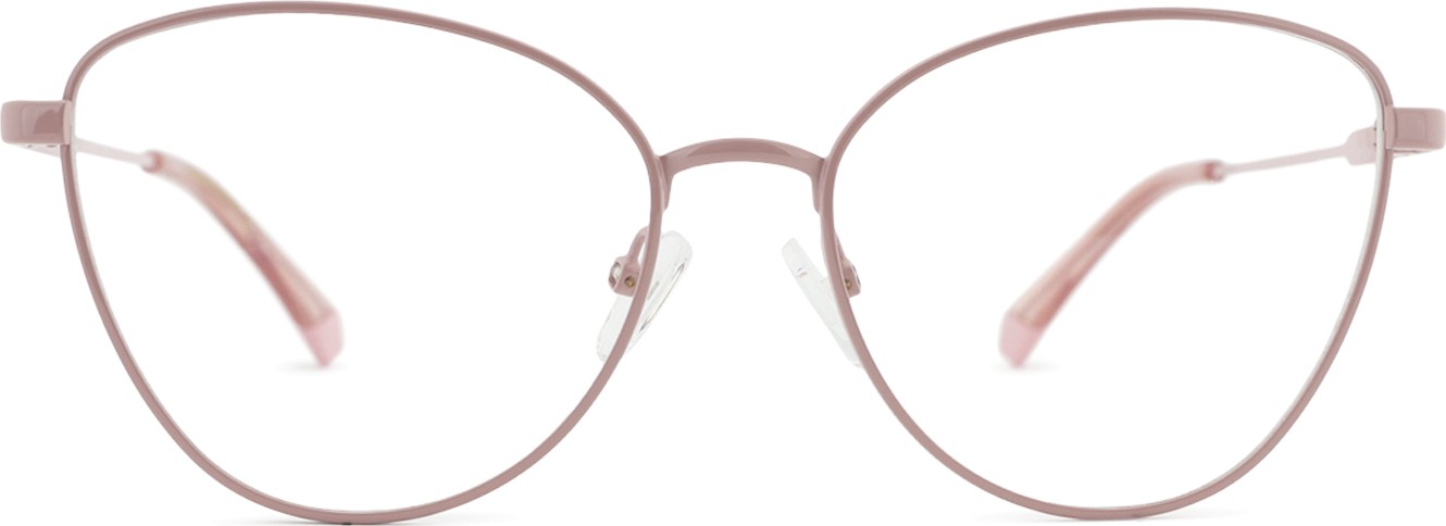 - A cor rosa da armação combina perfeitamente com um tom de pele claro e um cabelo castanho ou loiro claro.