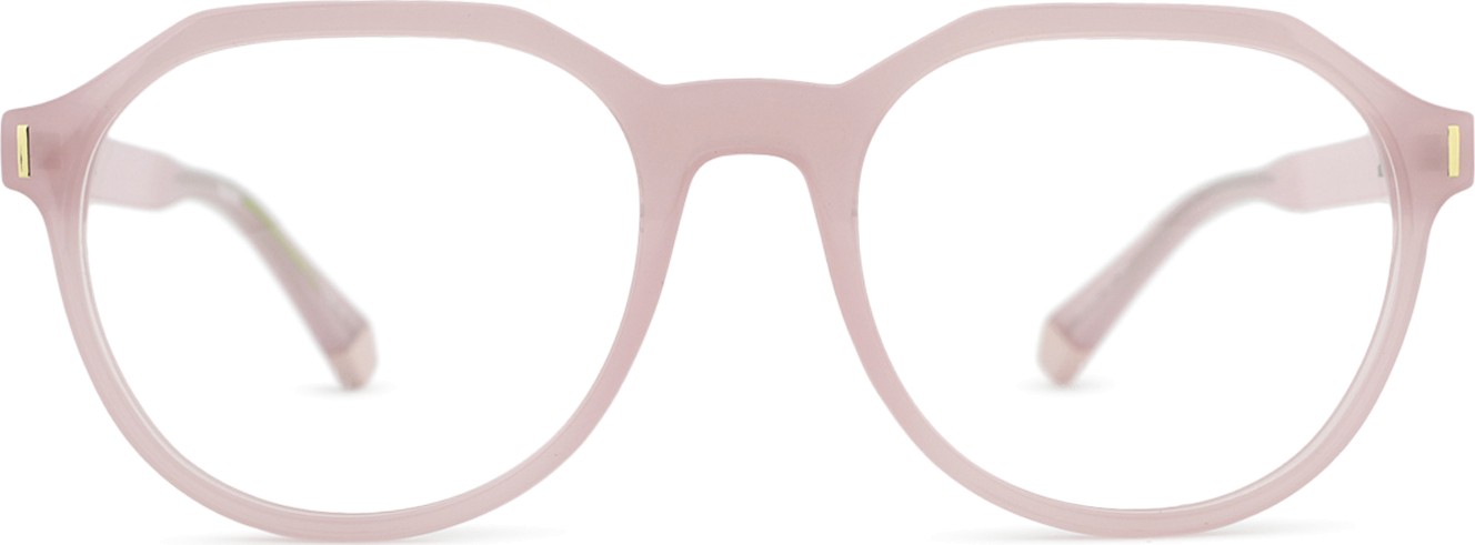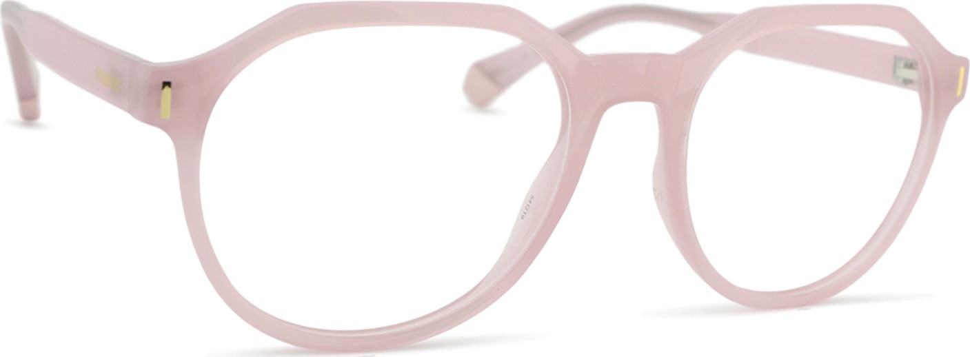 - A cor rosa da armação combina perfeitamente com um tom de pele claro e um cabelo castanho ou loiro claro.