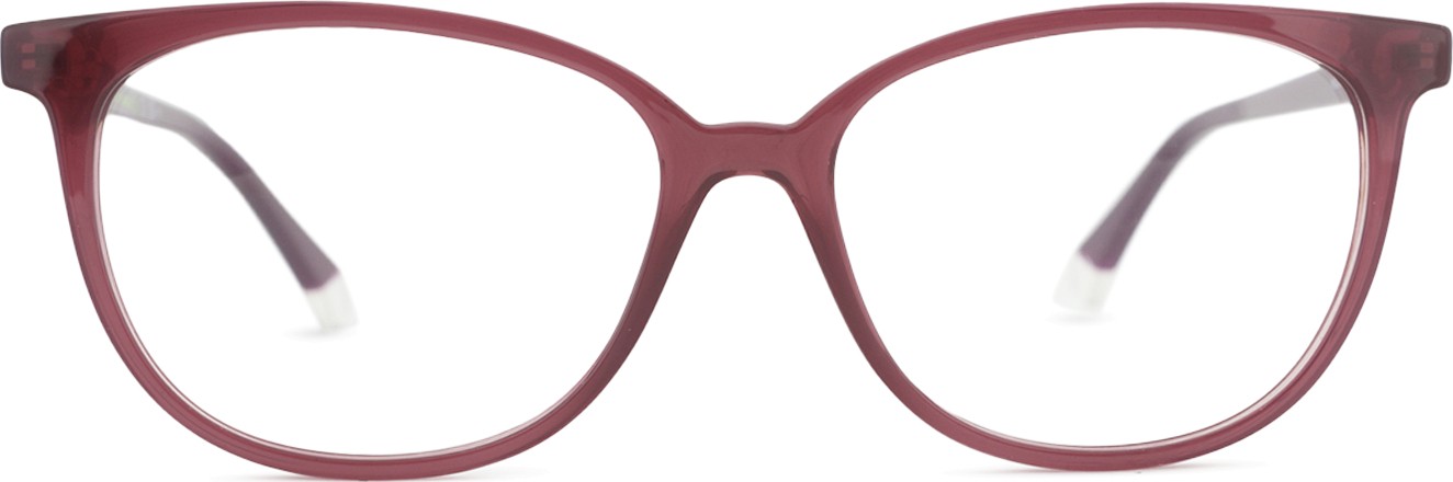 - A cor púrpura da armação combina perfeitamente com um tom de pele claro e um cabelo preto, cinzento, branco ou loiro claro.