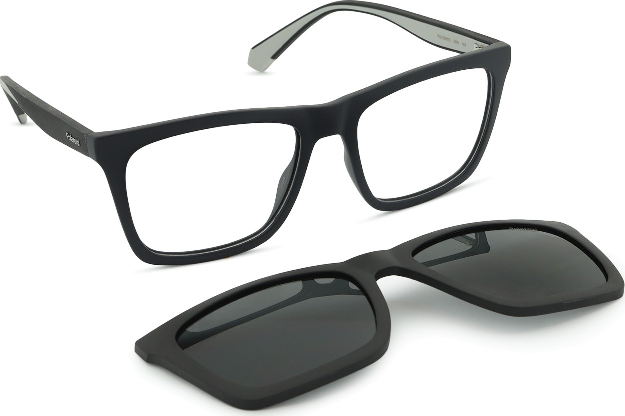 Os óculos também incluem um clip solar adicional, que se fixa facilmente à armação dos óculos e os transforma em óculos de sol. O clip adapta-se perfeitamente à forma da armação e a sua instalação é muito rápida e simples. No entanto, se tiver dioptrias mais altas, é necessário escolher uma versão mais fina das lentes para que o clip não toque na superfície esférica frontal das lentes e se ajuste corretamente à armação.