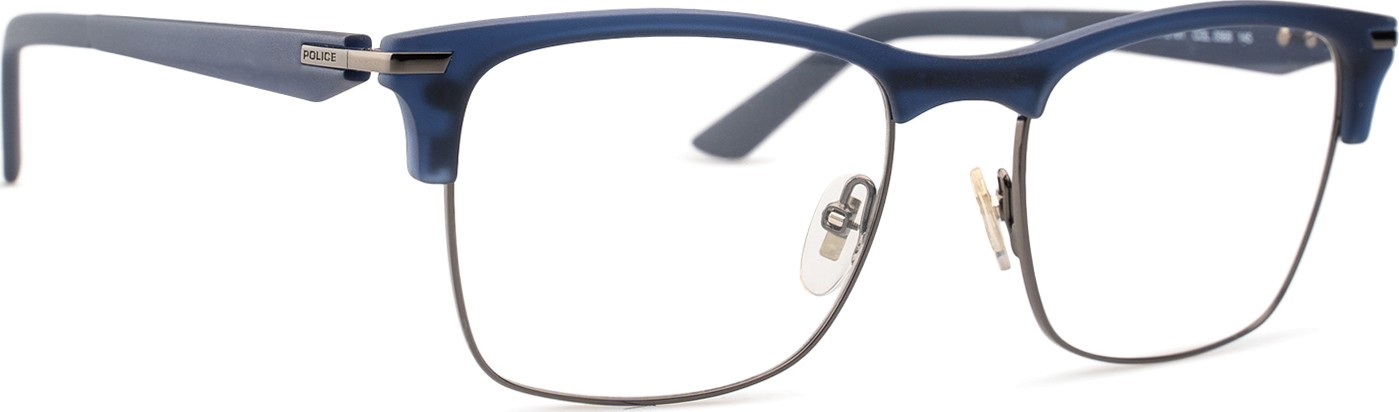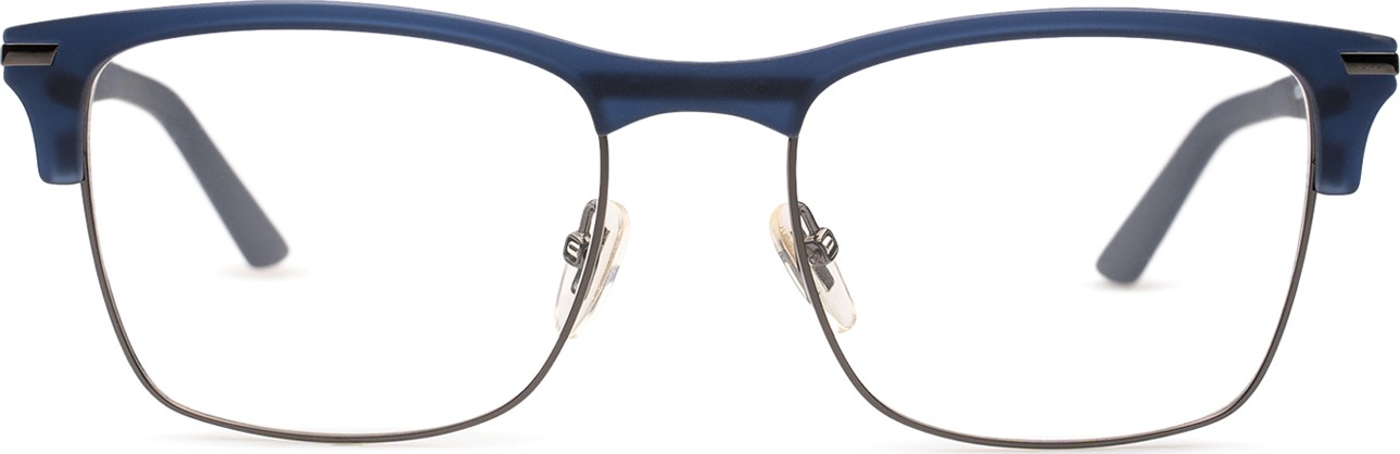 - A cor azul da armação combina perfeitamente com um tom de pele claro e um cabelo castanho claro, preto ou loiro claro.