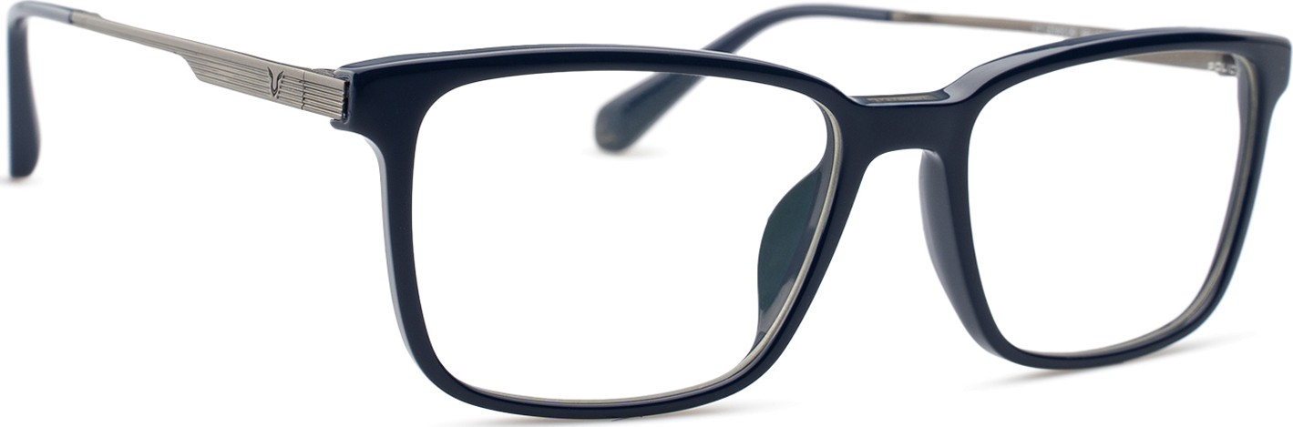 - A cor azul da armação combina perfeitamente com um tom de pele claro e um cabelo castanho claro, preto ou loiro claro.
