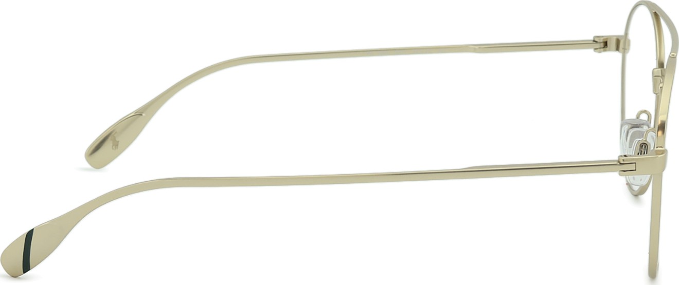 - A cor dourada da armação combina perfeitamente com um tom de pele escuro e um cabelo castanho escuro.