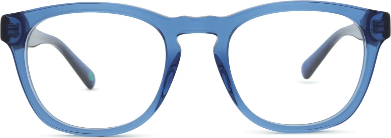 - A cor azul da armação combina perfeitamente com um tom de pele claro e um cabelo castanho claro, preto ou loiro claro.