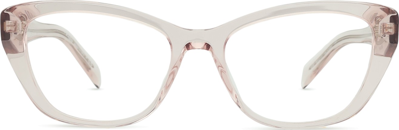 A cor rosa da armação combina perfeitamente com um tom de pele claro e um cabelo castanho ou loiro claro.
