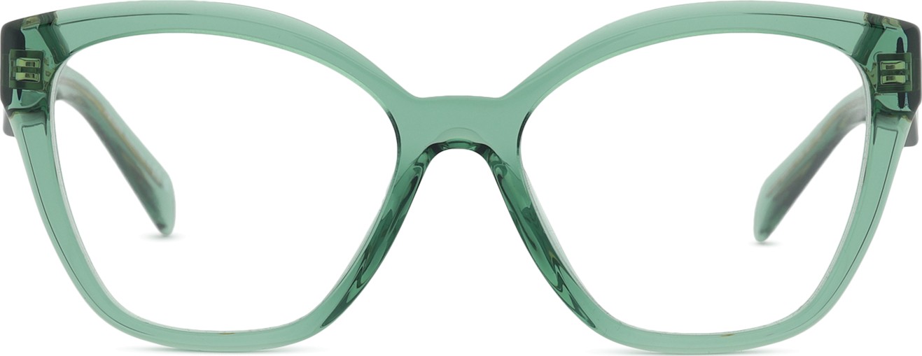 - A cor verde da armação combina perfeitamente com um tom de pele claro e um cabelo castanho escuro, preto ou ruivo.