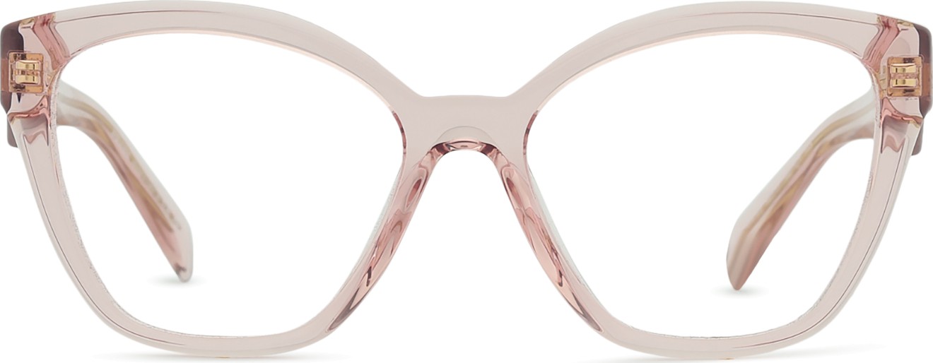 - A cor rosa da armação combina perfeitamente com um tom de pele claro e um cabelo castanho ou loiro claro.
