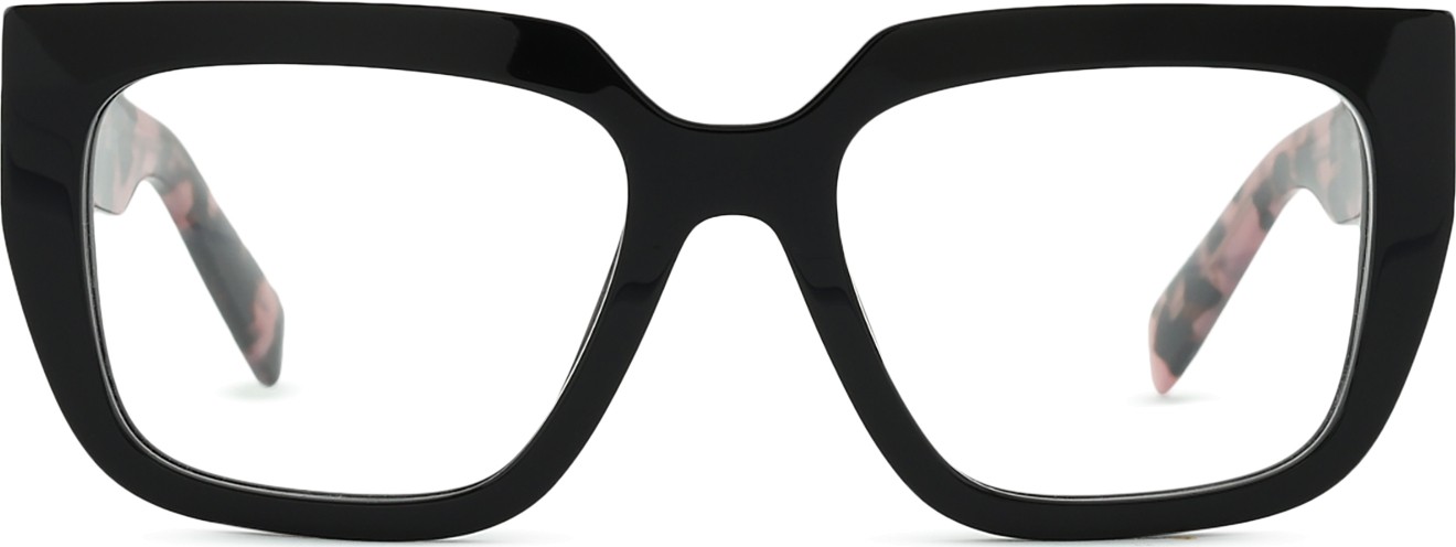 A cor preta da armação combina perfeitamente com um tom de pele claro e um cabelo loiro claro, castanho claro ou preto.