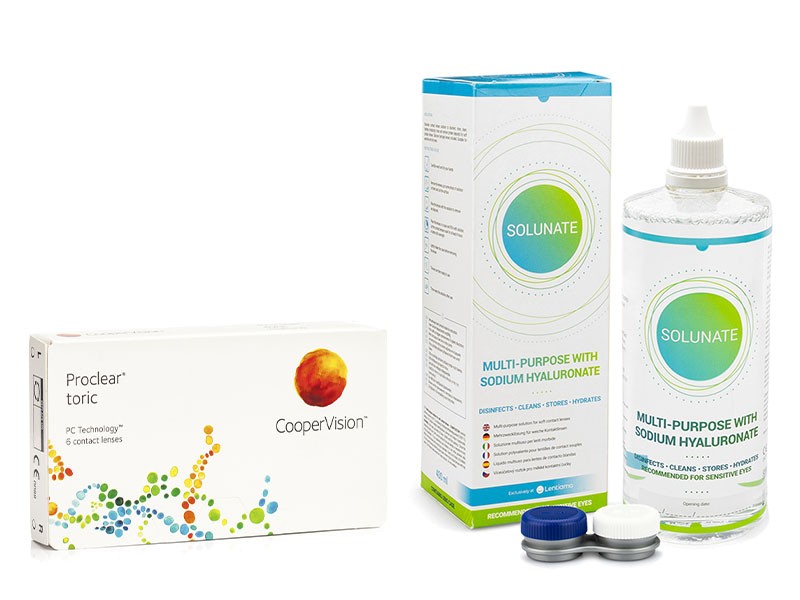 Proclear Toric CooperVision (6 lentes) + Solunate Multi-Purpose 400 ml com estojo