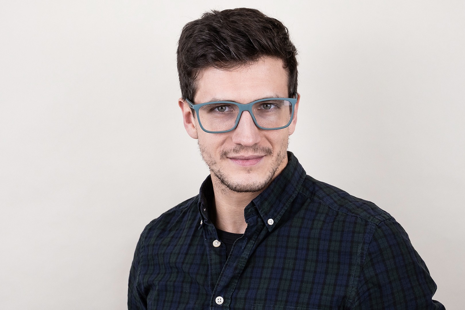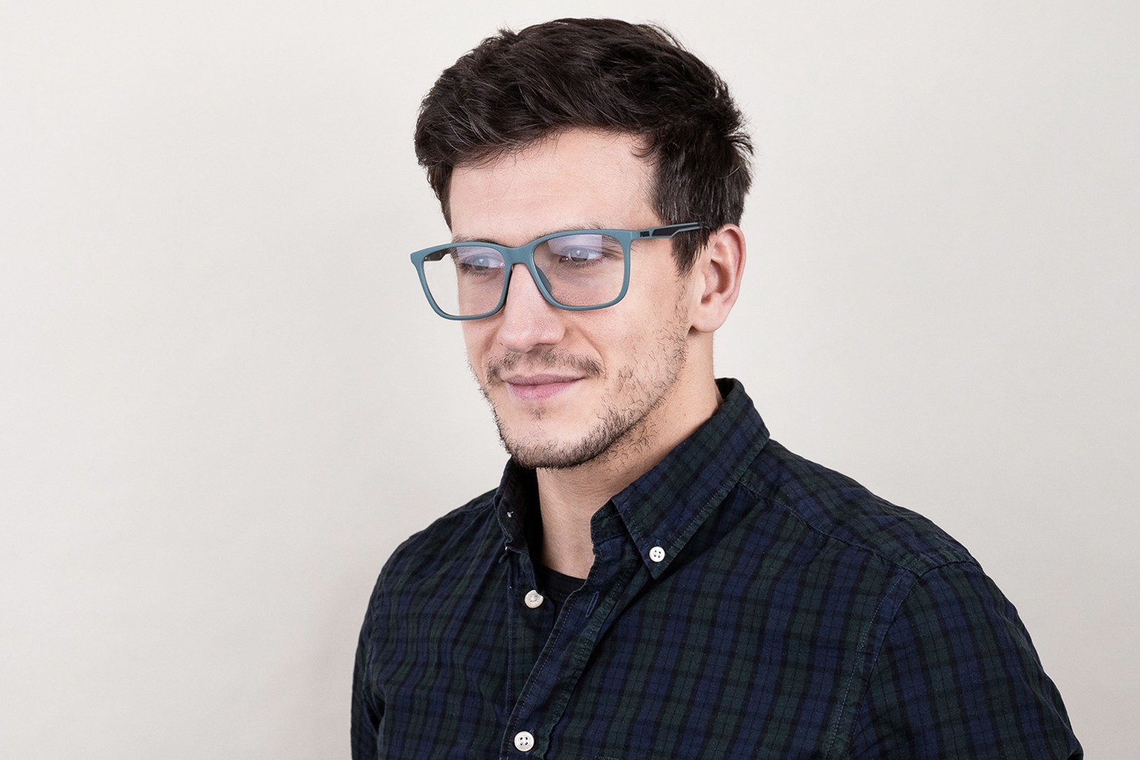 - A cor verde da armação combina perfeitamente com um tom de pele claro e um cabelo castanho escuro, preto ou ruivo.