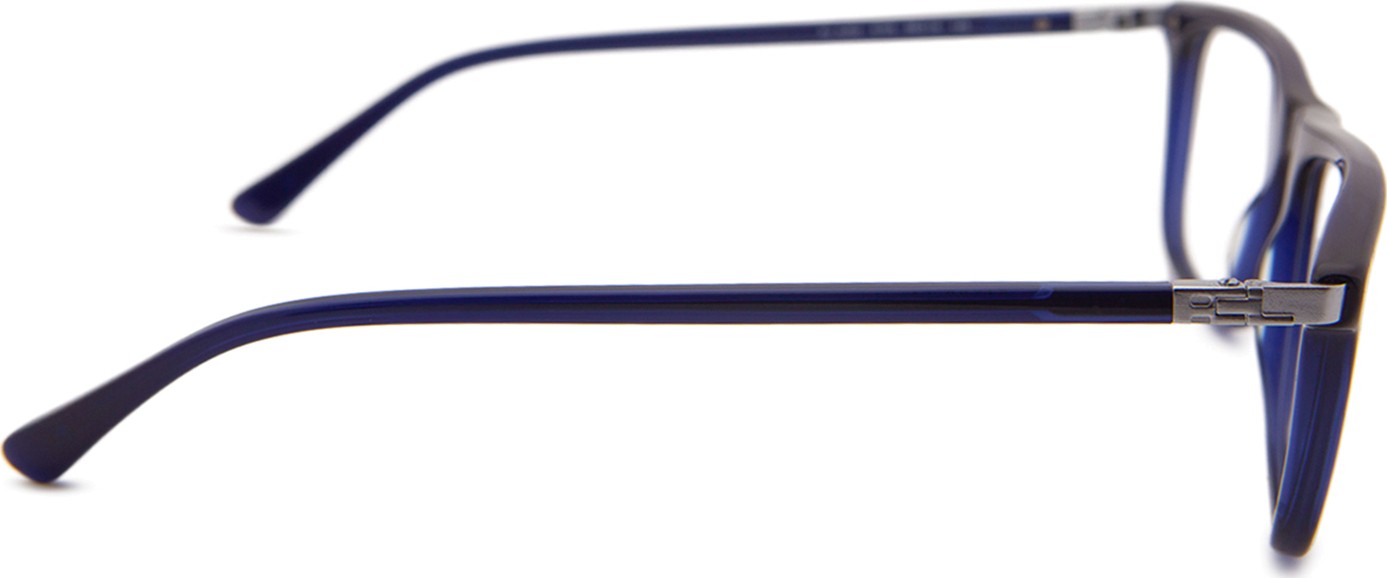 A cor azul da armação combina perfeitamente com um tom de pele claro e um cabelo castanho claro, preto ou loiro claro.
