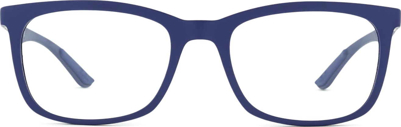 A cor azul da armação combina perfeitamente com um tom de pele claro e um cabelo castanho claro, preto ou loiro claro.