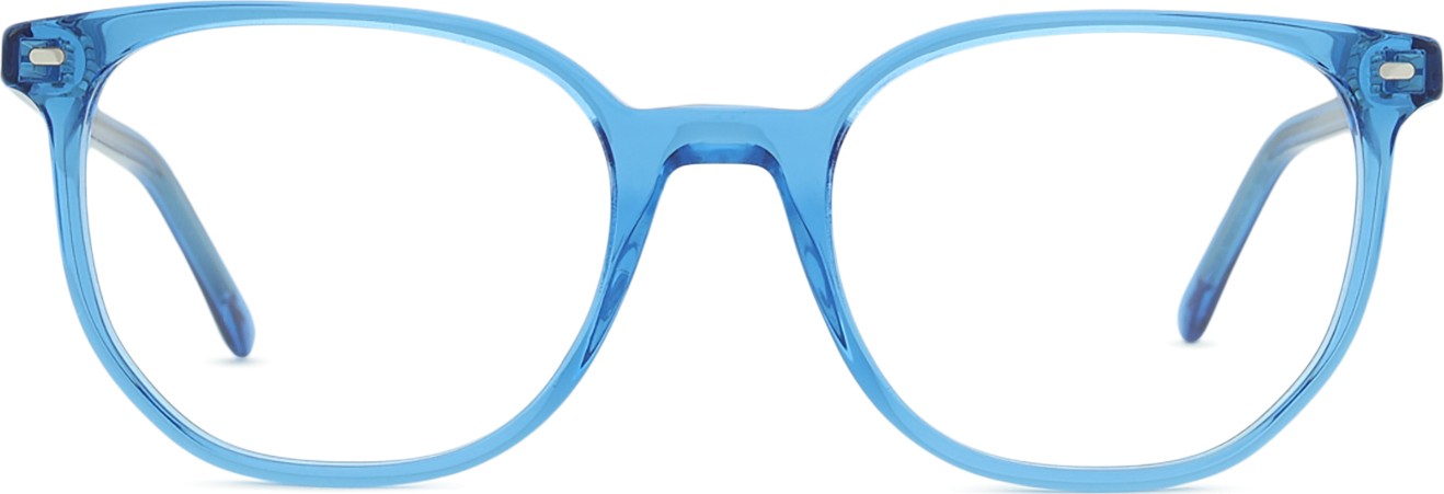 A cor azul da armação combina perfeitamente com um tom de pele claro e um cabelo castanho claro, preto ou loiro claro.