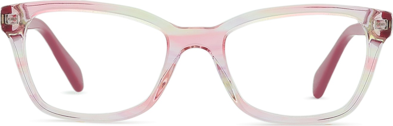 • A cor rosa da armação combina perfeitamente com um tom de pele claro e um cabelo castanho ou loiro claro.
