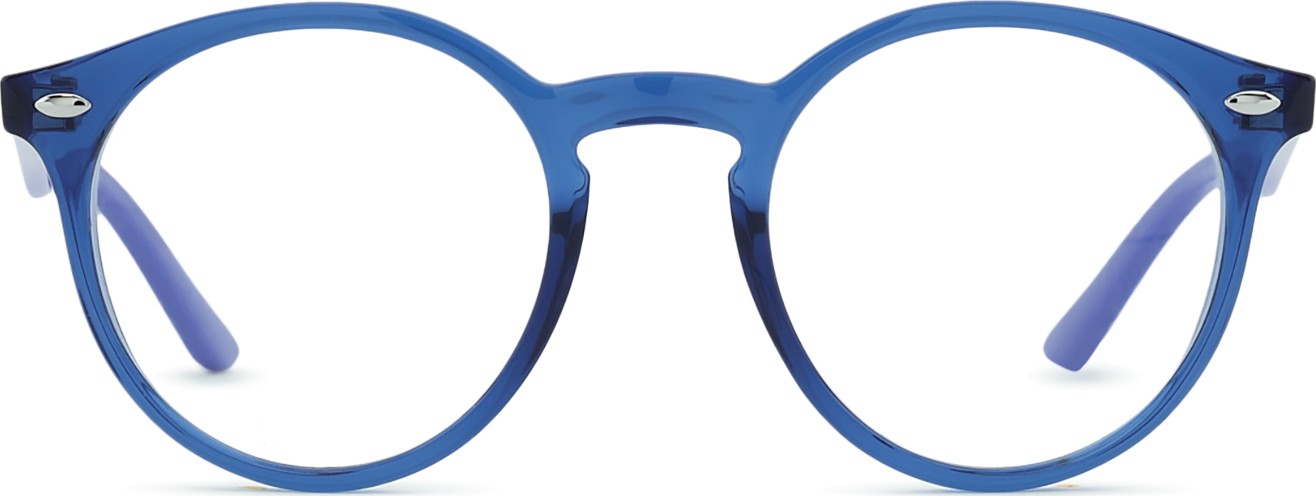 - A cor azul da armação combina perfeitamente com um tom de pele claro e um cabelo castanho claro, preto ou loiro claro.