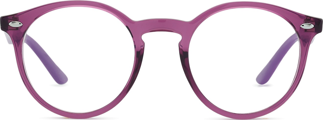 - A cor púrpura da armação combina perfeitamente com um tom de pele claro e um cabelo preto, cinzento, branco ou loiro claro.